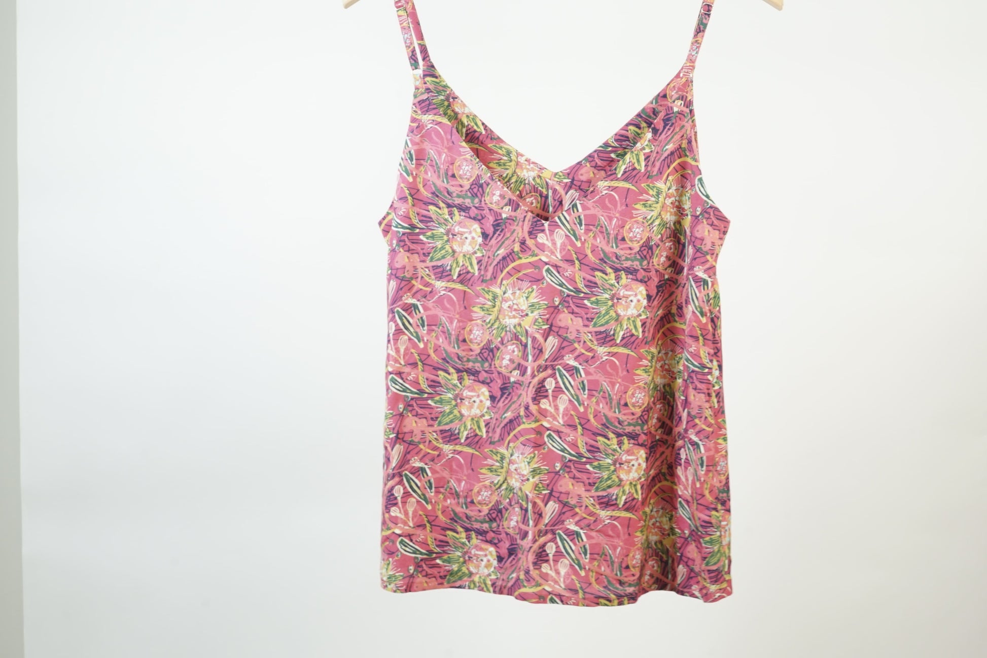 Débardeur original avec sa très belle encolure dégagée en V devant et dans le dos, ainsi que ses fines bretelles réglables pour s'ajuster à toutes les morpholigies. Un basique intemporel ; mixant élégance et confort avec sa matière ultra douce et fluide.