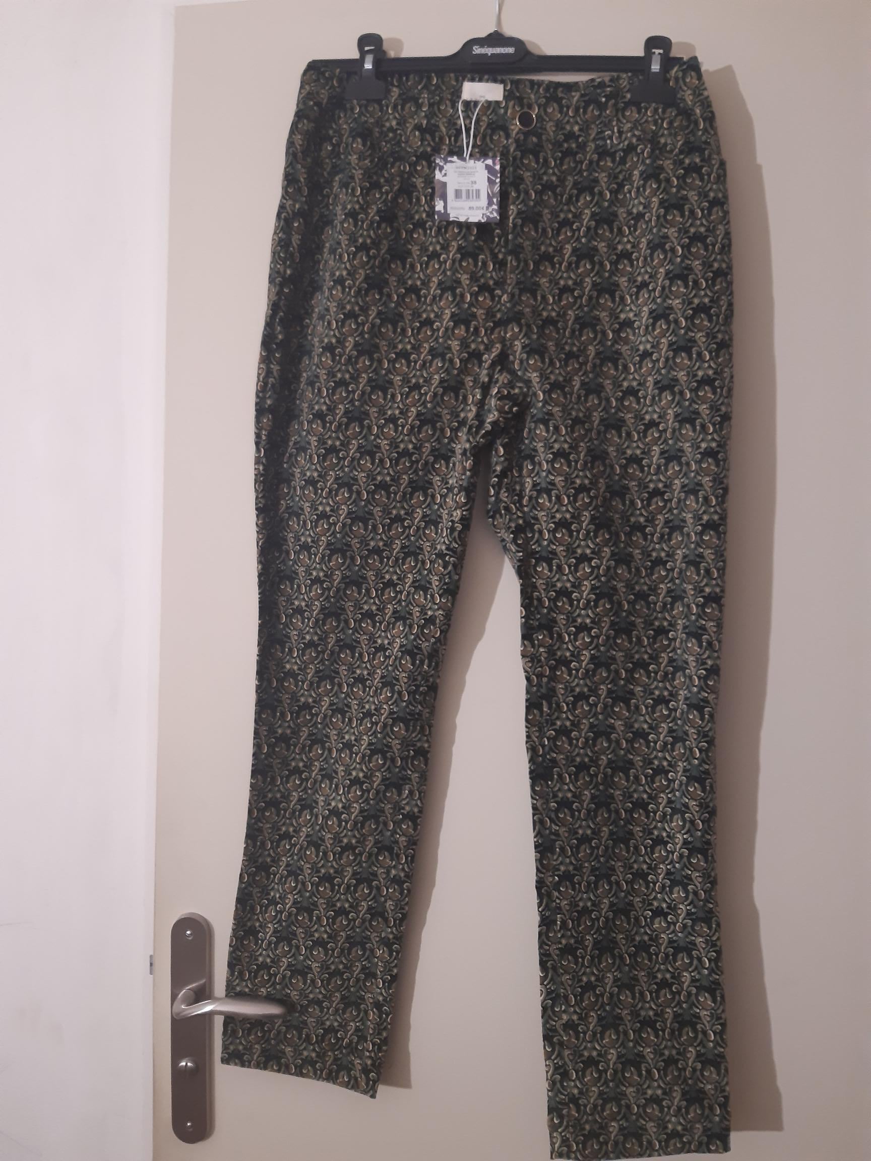 Pantalon en velours lisse imprimé, à la coupe cigarette pour un look chic et décontracté. Sa coupe cigarette affine votre silhouette et sa longueur 7/8ème dévoile vos chevilles avec style. Il possède des poches cavalières sur le devant et des passants à la ceinture pour y glisser la ceinture de votre choix et affirmer encore plus votre look. Vous l'aimerez porté avec des chaussures type mocassins ou derbies.