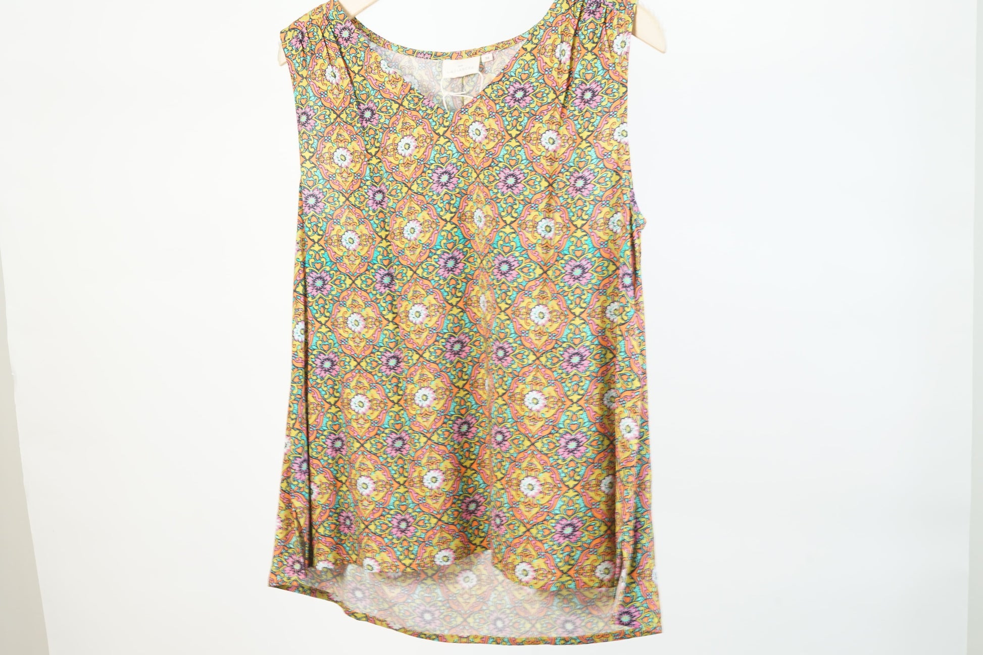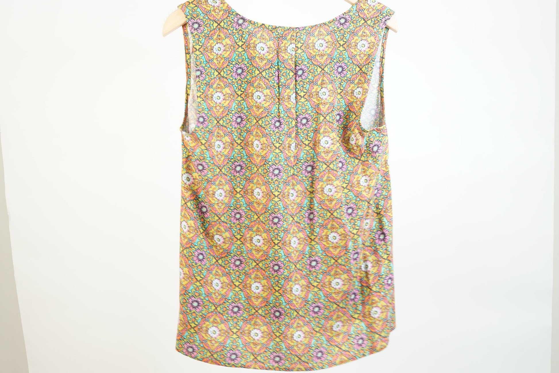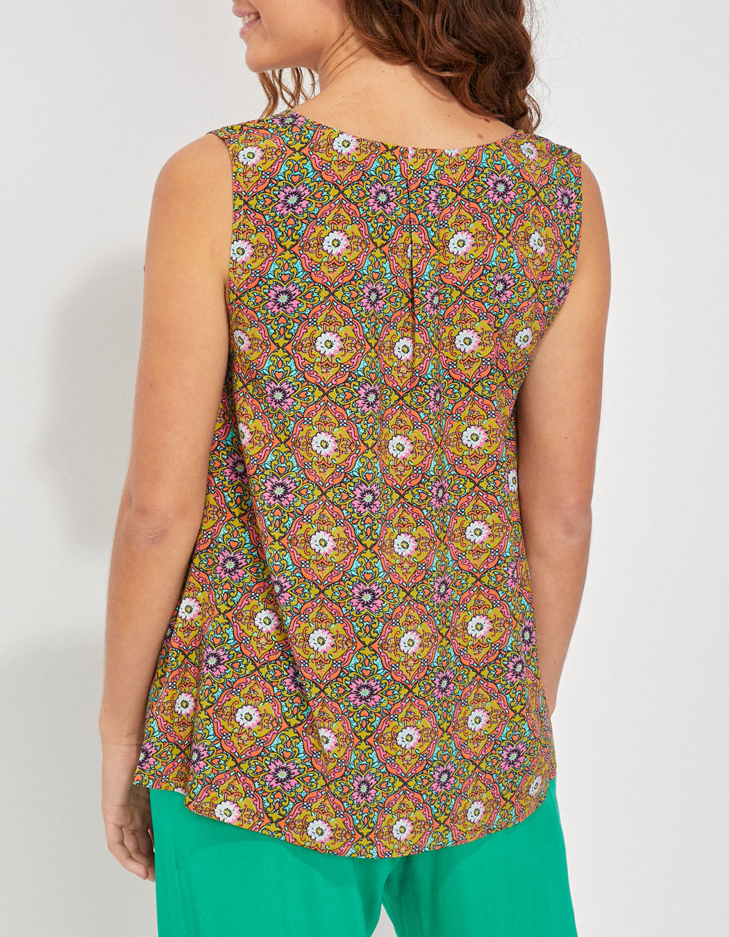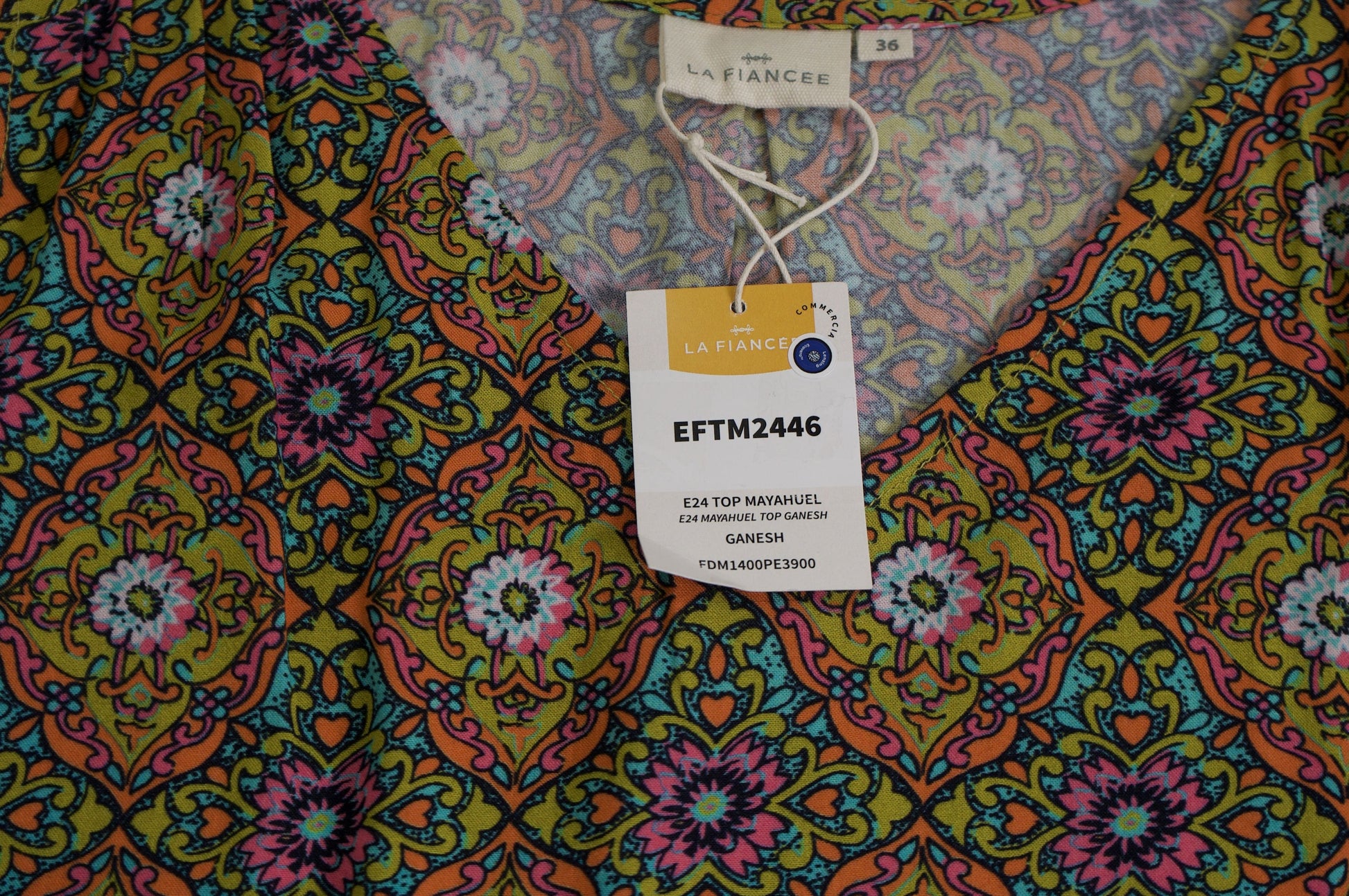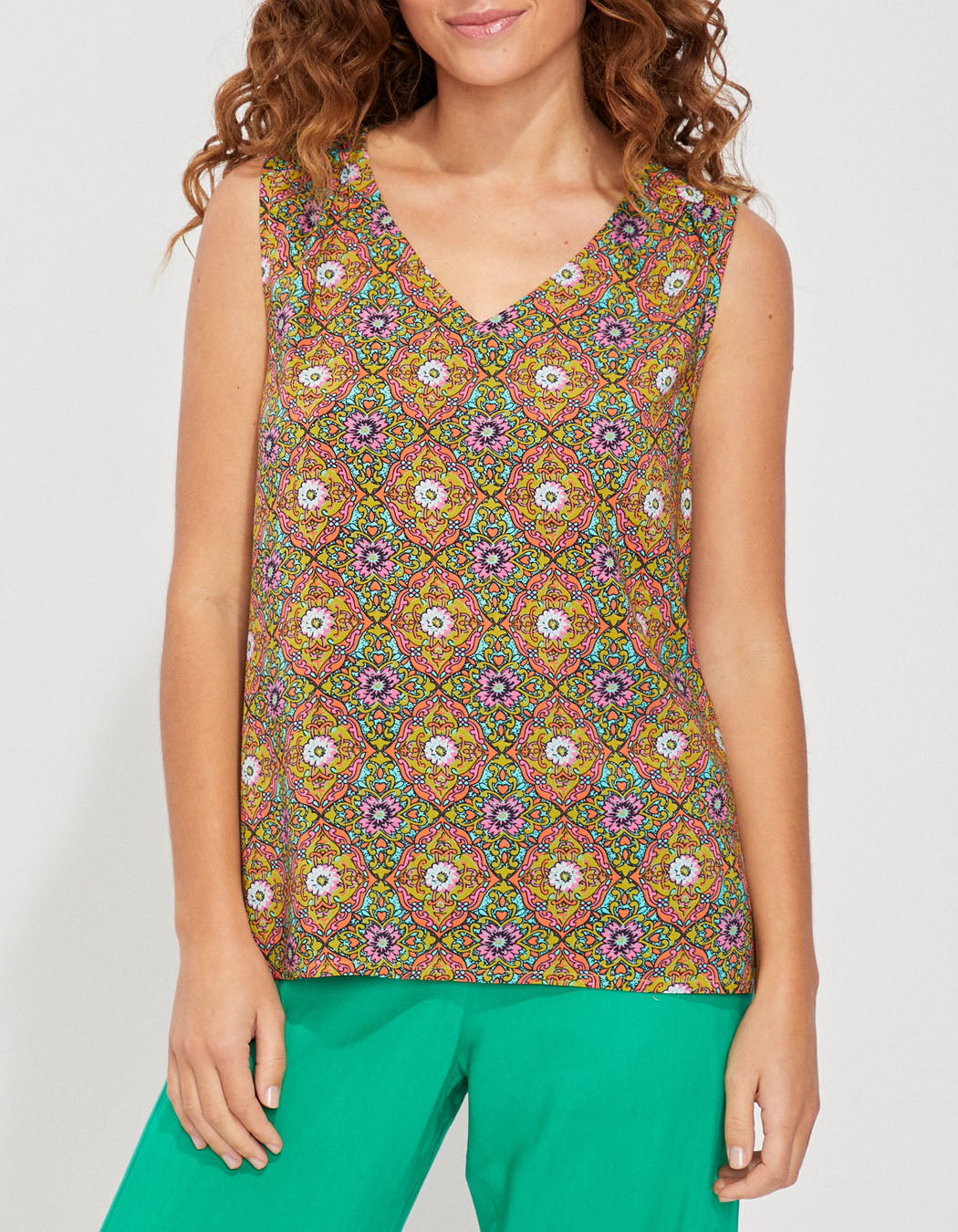 Top coloré idéal avec sa coupe evasée dans une matière fluide et douce en voile de viscose Ecovero, chic et simple à la fois, un basique féminin avec son joli col V qui met en valeur.