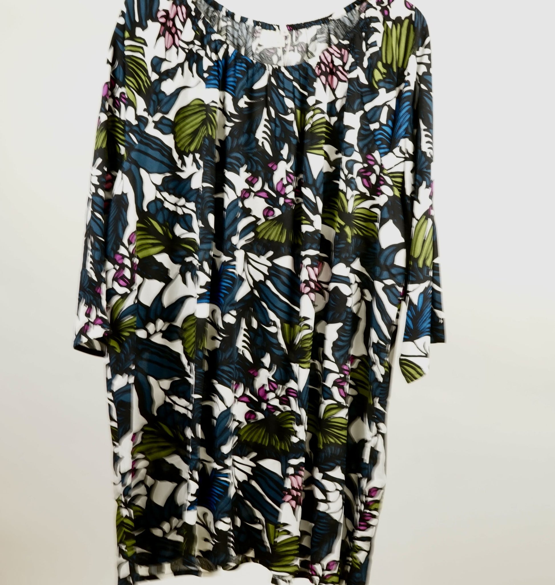 Tunique imprimée fluide, à la coupe loose ultra confortable, à accessoiriser avec une ceinture selon ses envies.