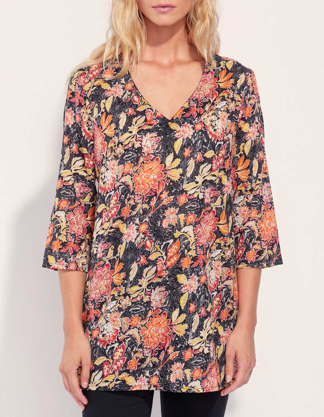 Tunique femme courte en voile de coton biologique imprimé, une tunique originale légère ultra confortable.
