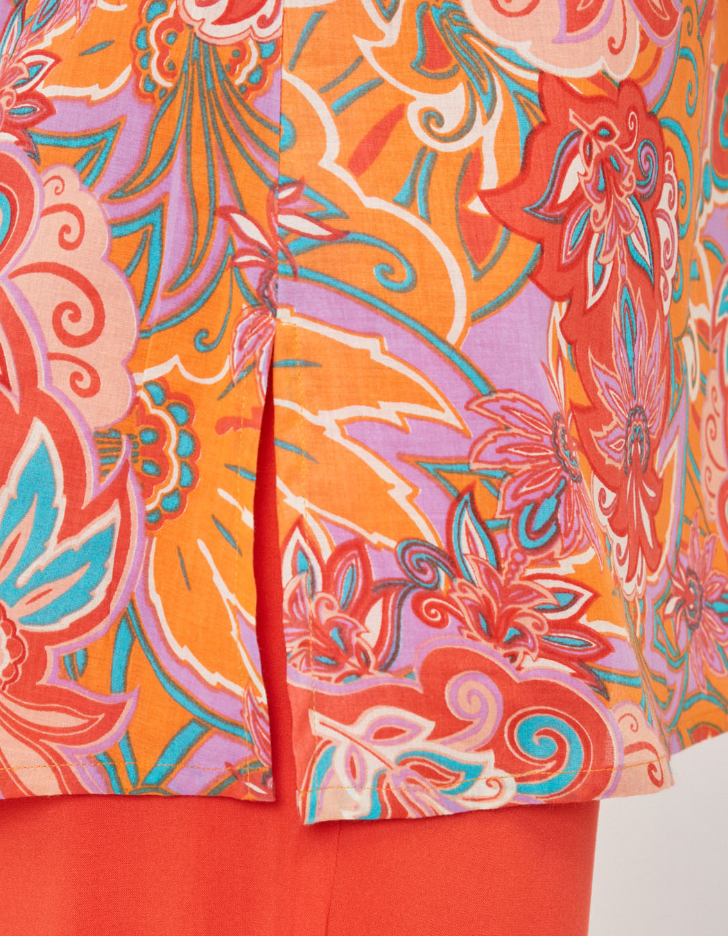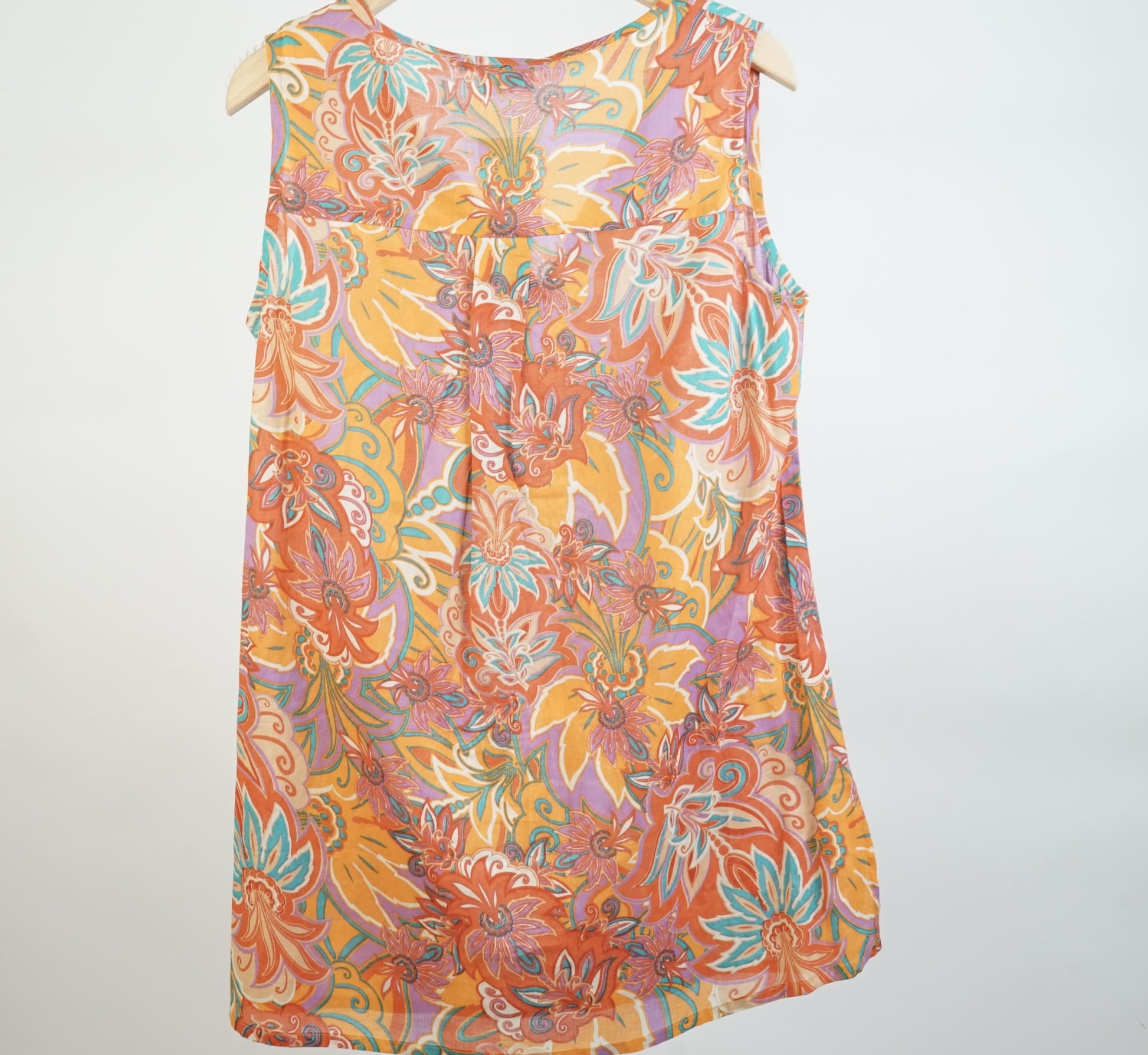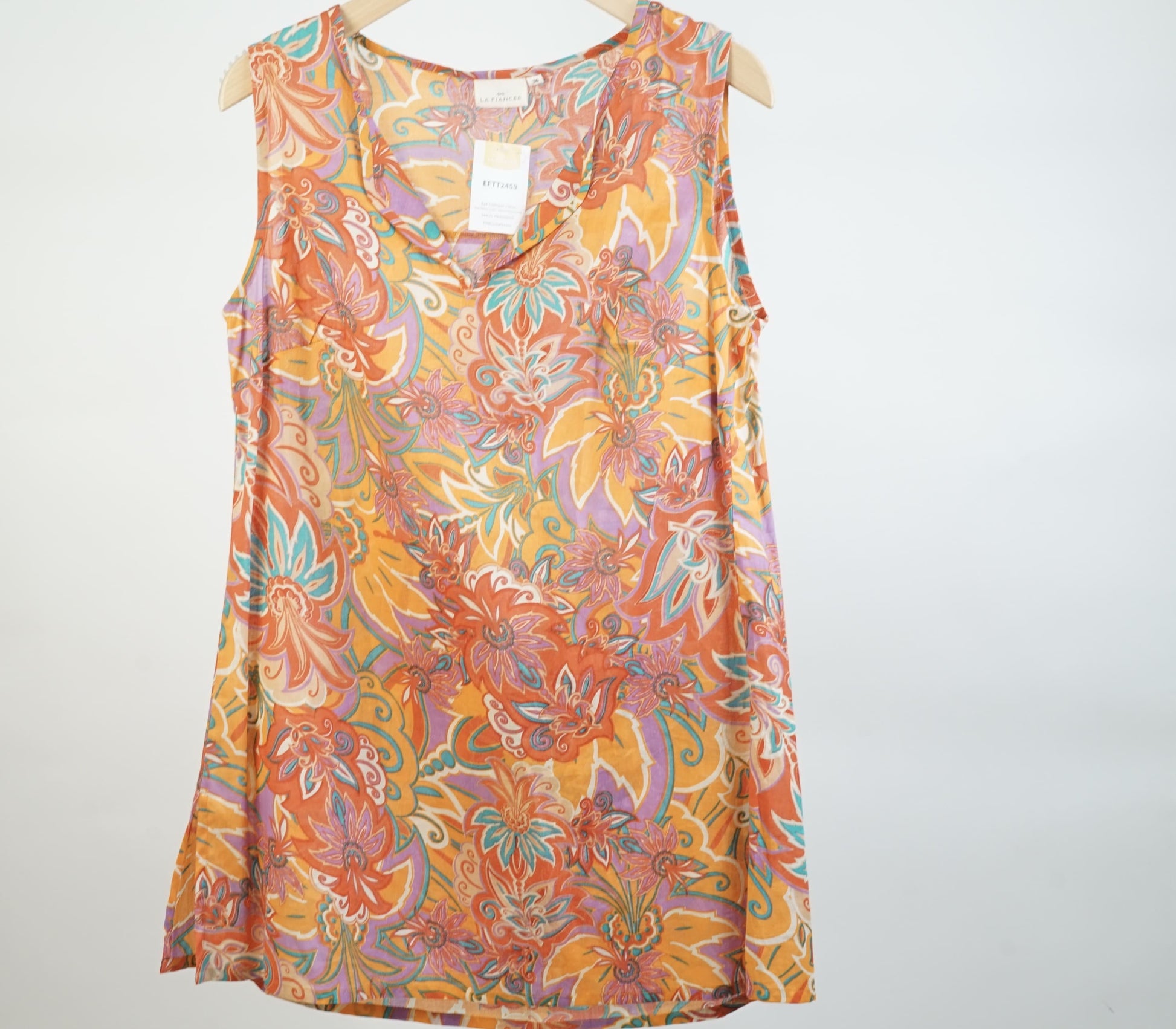 Tunique encolure tunisienne sans manches en coton biologique imprimé. Sa coupe droite et sa matière ultra confortable est idéale pour toutes les morphologies du 36 au 50. C'est la tunique facile à enfiler que l'on peut porter par dessus un pantalon ou un short uni.